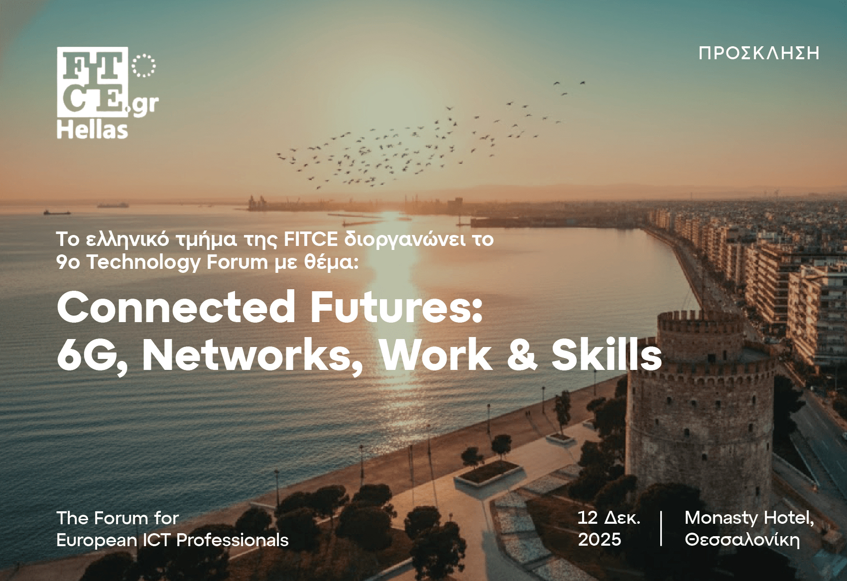 Η FITCE Hellas, υπό την αιγίδα της Περιφέρειας Κεντρικής Μακεδονίας, ανακοινώνει τη διοργάνωση της ημερίδας “Connected Futures: Rethinking Work, Networks & Skills”, η οποία θα πραγματοποιηθεί στις 12 Δεκεμβρίου 2025 στο Monasty Hotel, στο κέντρο της Θεσσαλονίκης.